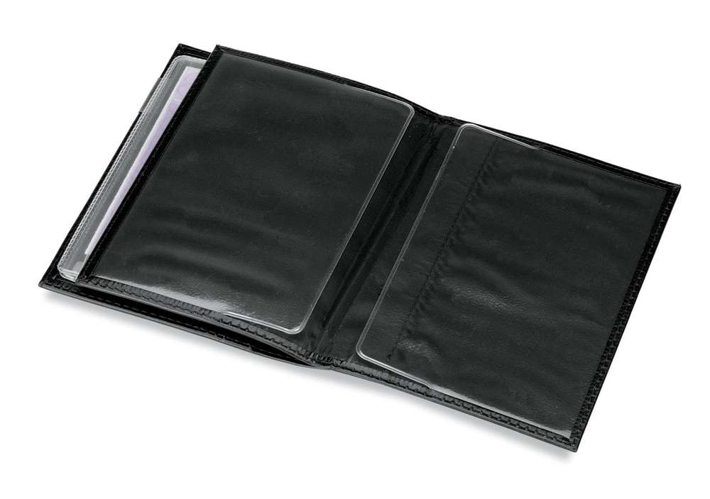 Бумажник водителя: 6 пластиковых карманов (в том числе для документов водителя, доверенности, страхового полиса), за ними — 5 карманов для пластиковых карт.