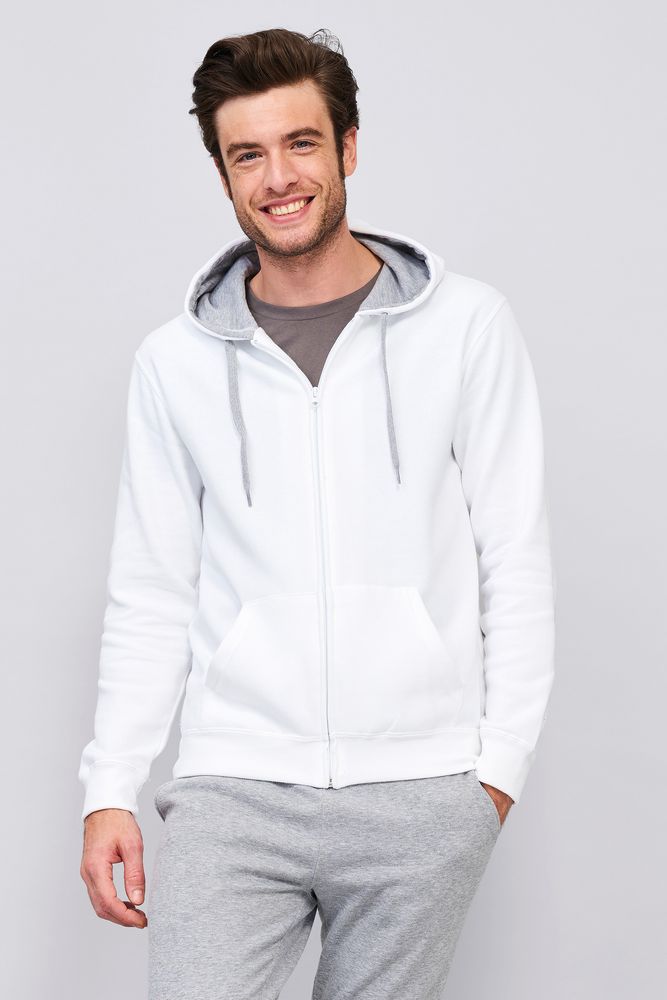 Толстовка мужская на молнии Soul Men 290 с контрастным капюшоном, белая