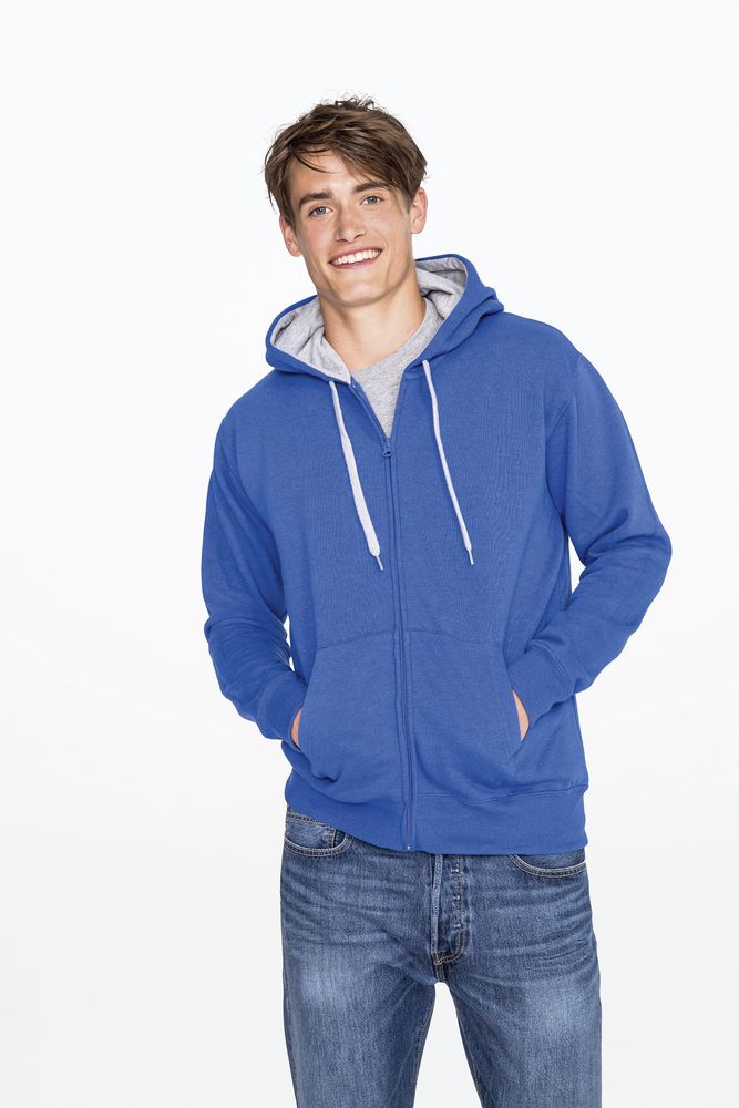Толстовка мужская на молнии Soul Men 290 с контрастным капюшоном, темно-синяя