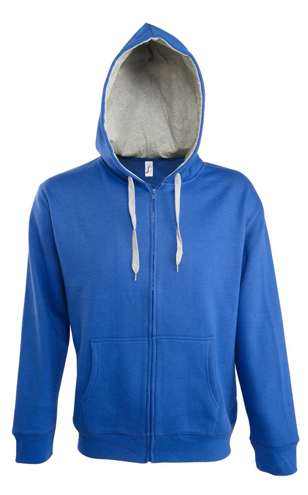 Толстовка мужская на молнии Soul Men 290 с контрастным капюшоном, ярко-синяя
