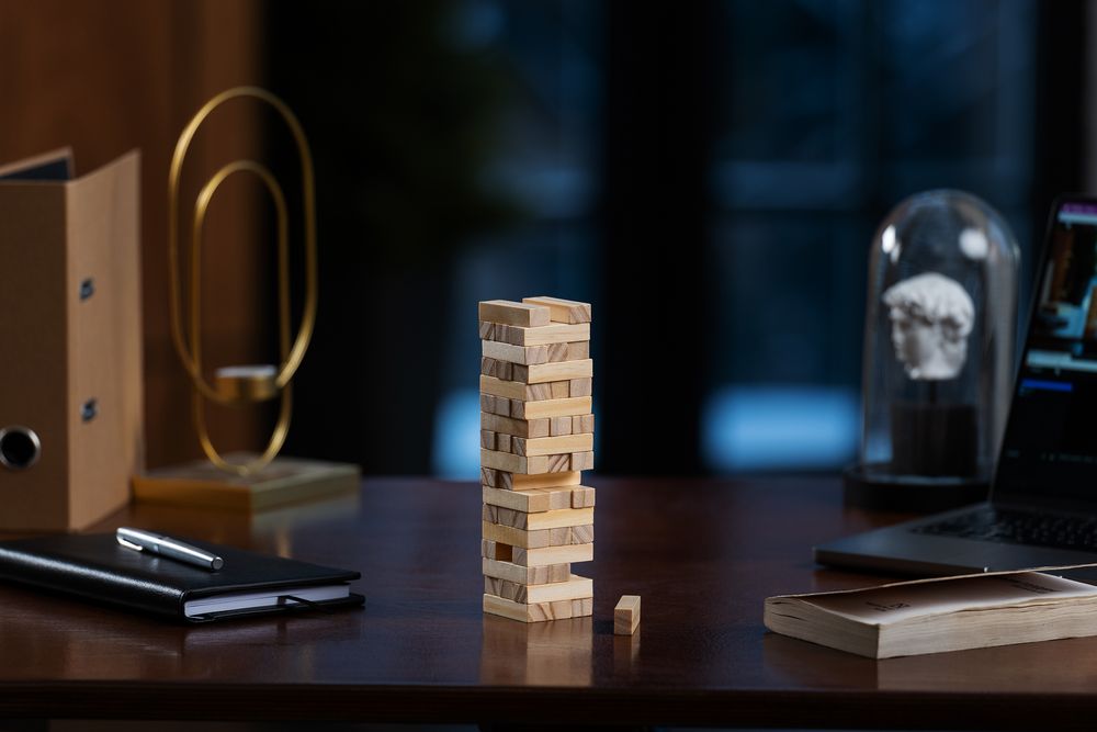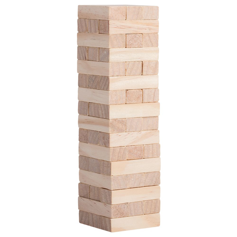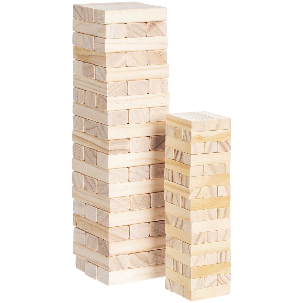 Второе название игры — «Падающая башня». Сначала строится башня: по три брусочка в ряд, каждый слой перпендикулярен предыдущему. Затем игроки по очереди вытаскивают по одному брусочку и кладут его на верх сооружения. Тот игрок, кто обрушит башню, проиграл. Игра тренирует ловкость, внимание, терпение и пространственное мышление, что очень важно и в бизнесе. Так что подарок не только развлечет, но и может стать символом-пожеланием. Игра состоит из 48 деревянных брусочков. Поставляется в картонной коробке. Инструкция с правилами в комплекте.