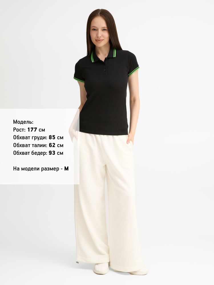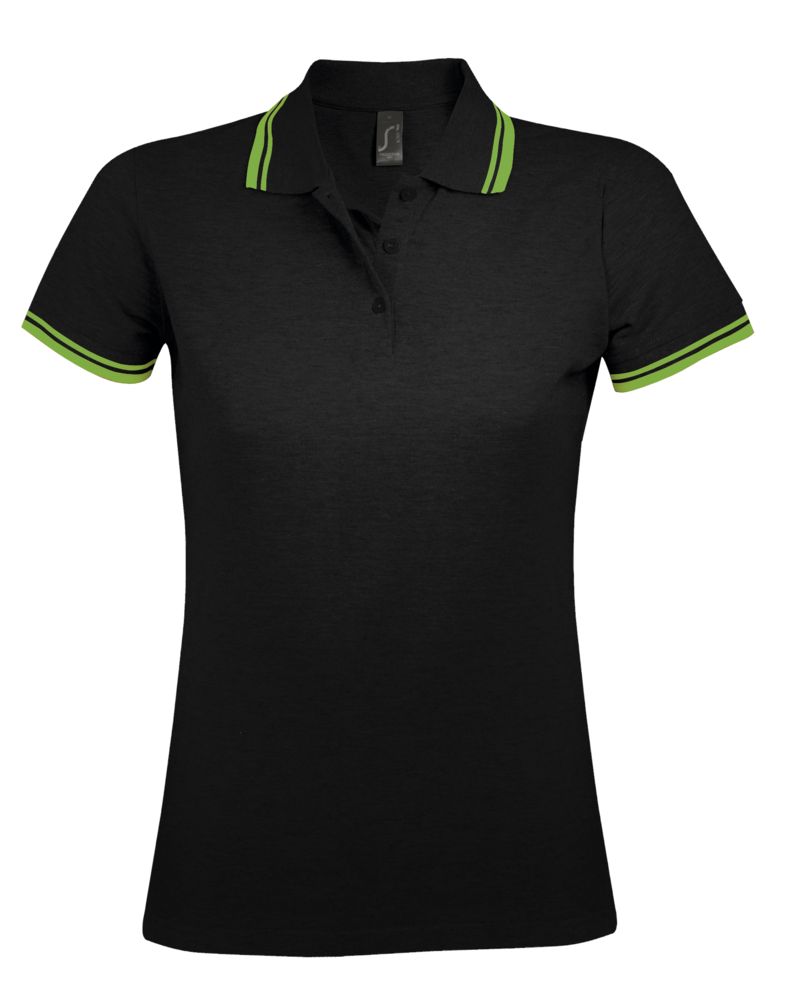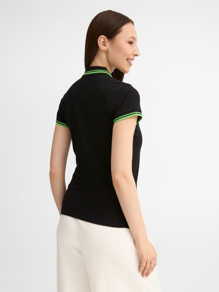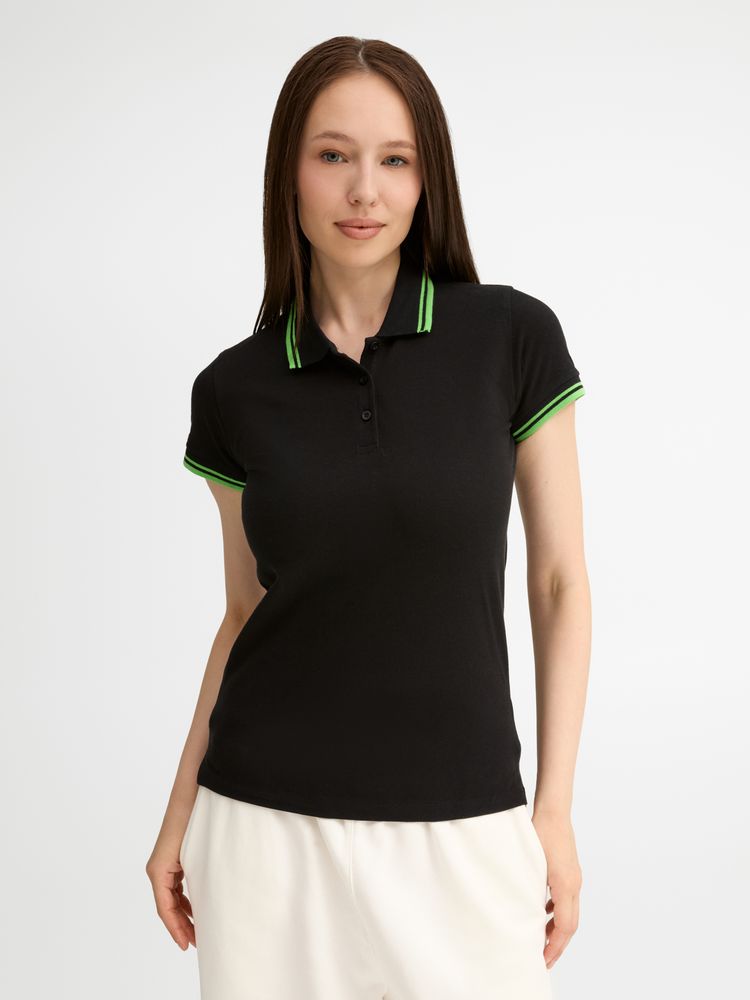 Рубашка поло женская Pasadena Women 200 с контрастной отделкой, черная с зеленым