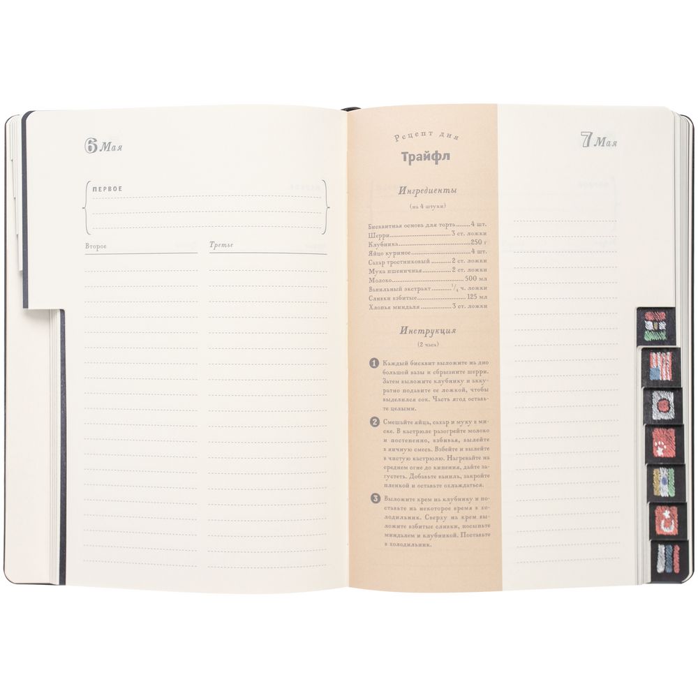 «Вокруг вкуса» — это не только ежедневник, но еще и кулинарный путеводитель, позволяющий совершить всемирное гастрономическое путешествие, не отходя от обеденного стола.