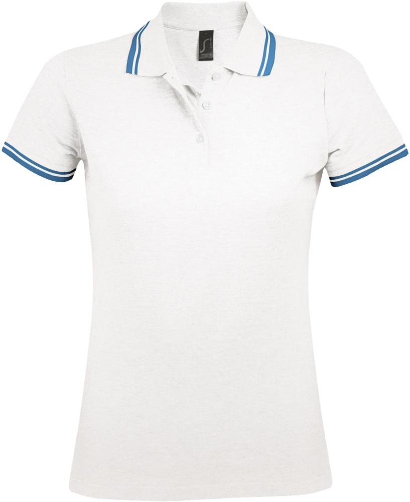 Рубашка поло женская Pasadena Women 200 с контрастной отделкой, белая с голубым