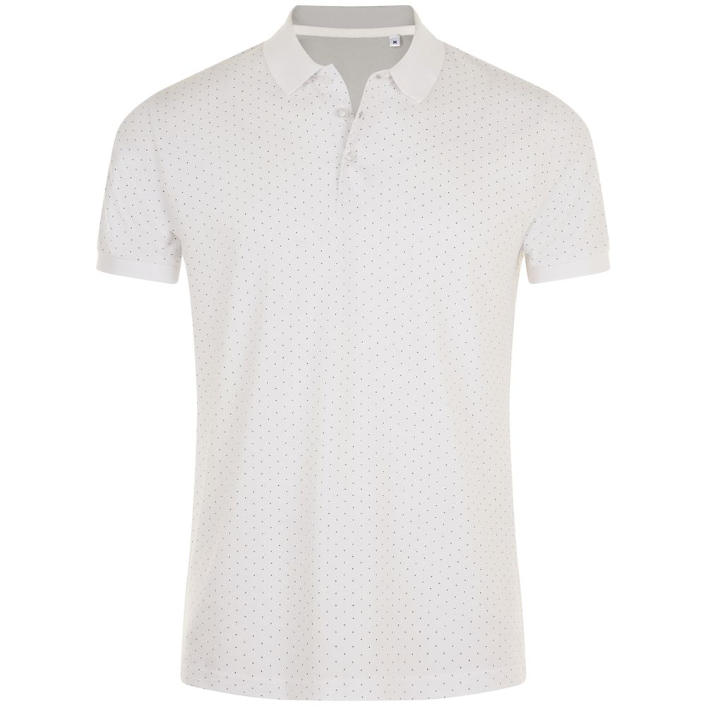 Рубашка поло приталенного силуэта с рисунком в точку. Лейбл производителя в боковом шве изнутри, в шве горловины - только бирка с размером, что позволяет вам нанести свой логотип.