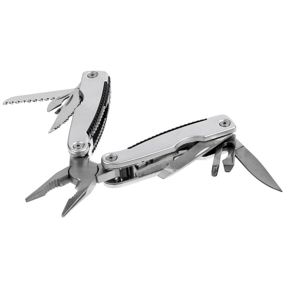 Классический мультитул-плоскогубцы, в рукоятках которого прячется еще 10 полезных инструментов от отвертки до пилы. Выручит во многих бытовых ситуациях, а для хранения удобно складывается в прочный чехол. Многофункциональный инструмент, 11 функций: