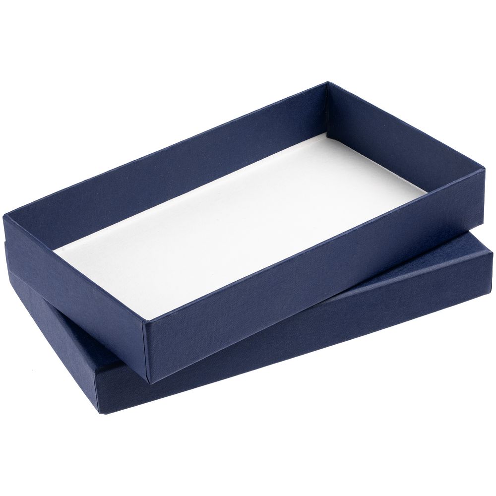 Коробка выполнена из переплетного картона, кашированного дизайнерской бумагой Malmero Bleu.