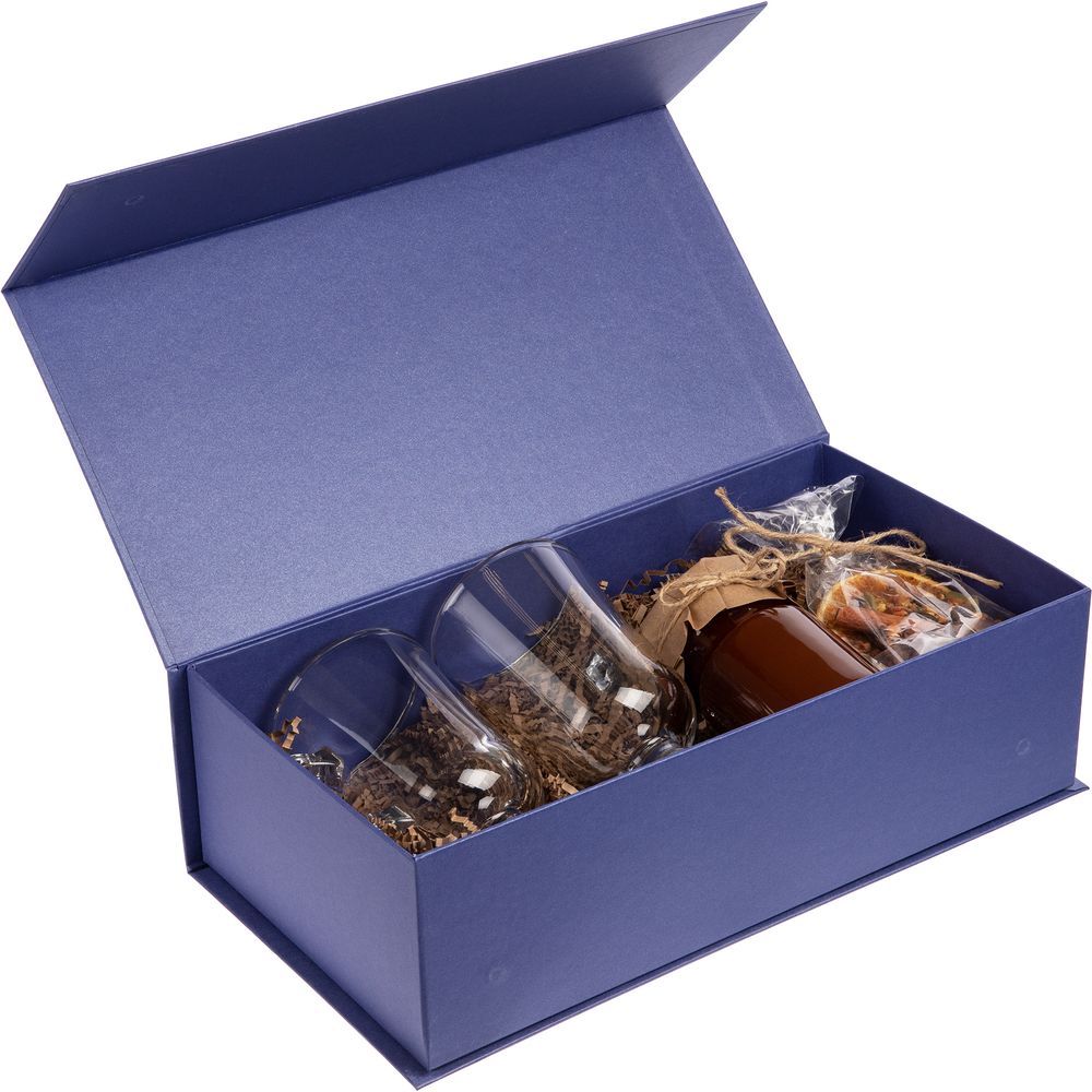 Коробка изготовлена из переплетного картона, кашированного дизайнерской бумагой Galaxy Metallic, с крышкой на магните.