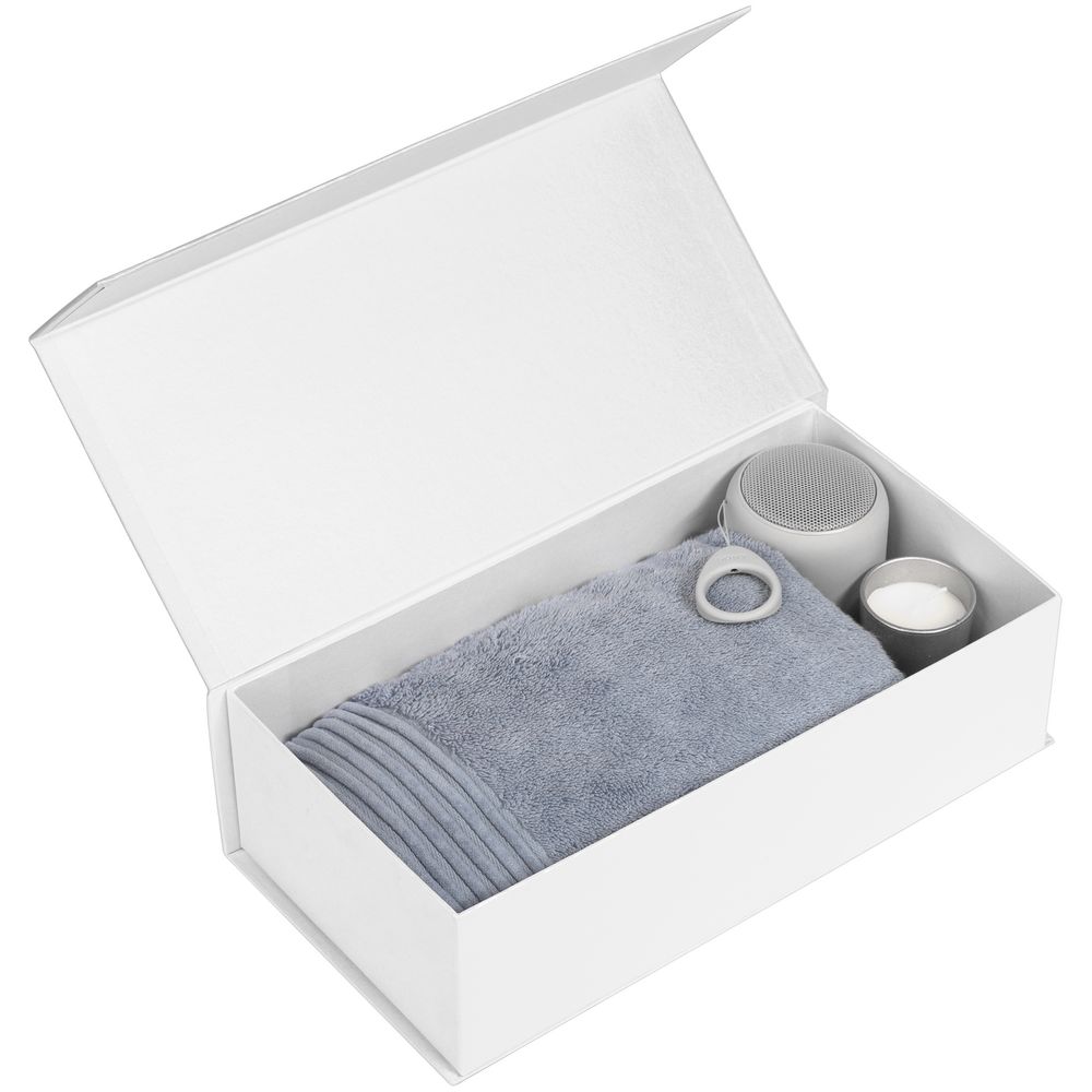 Коробка изготовлена из переплетного картона, кашированного дизайнерской бумагой Majestic, с крышкой на магните.