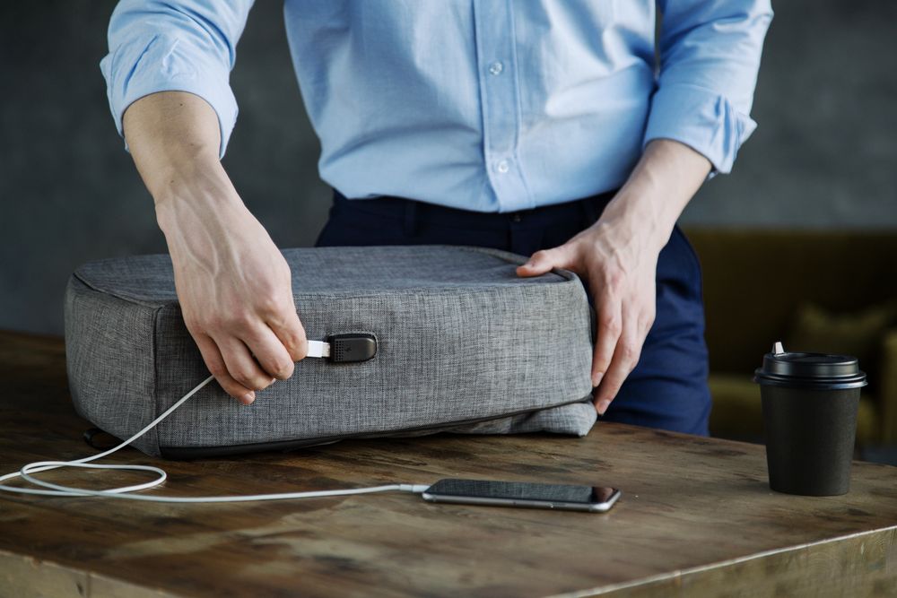 Внешний USB-порт для зарядки гаджетов (внутри рюкзака — провод для подключения и карман для размещения аккумулятора)