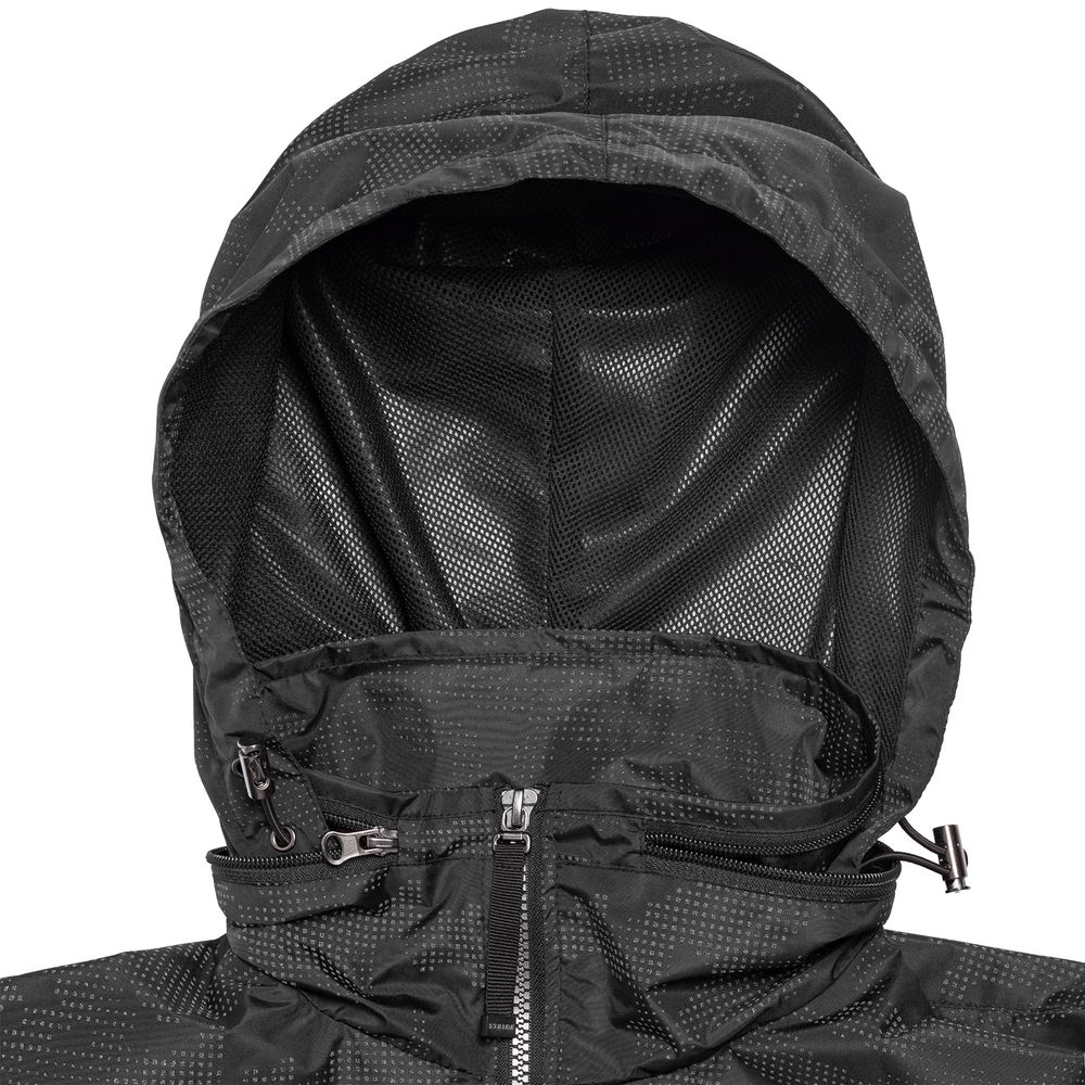 Ветровка с капюшоном из ткани с водоотталкивающей пропиткой и светоотражающим рисунком.