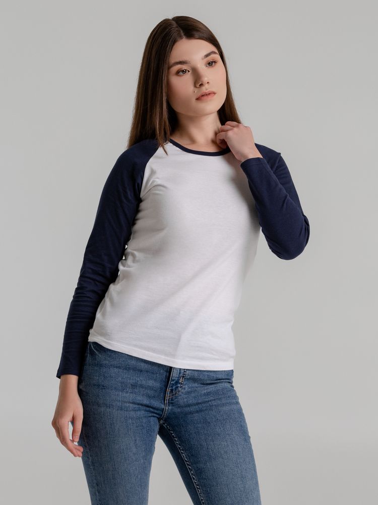 Футболка женская с длинным рукавом Milky Lsl, белая с темно-синим