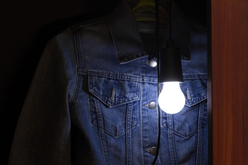 Да будет свет! Разместите привычную на вид лампочку где угодно: на дереве в саду, в темном углу шкафа или рядом с рабочим местом. Длинный шнур служит одновременно для крепления светильника, а также для его включения или выключения.