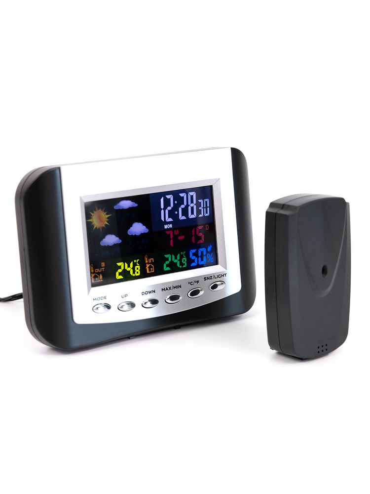 Метеостанция с цветным дисплеем и выносным датчиком точно покажет погоду в доме и за окном.