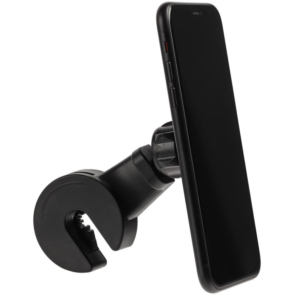 Держатель с помощью крюка крепится на подголовник.В комплекте две металлические пластины, которые можно приклеить с помощью двухстороннего скотча (в комплекте) или вложить под заднюю крышку или чехол, чтобы не портить внешний вид телефона. Максимальный диаметр крепления подголовника — 1,1 см.