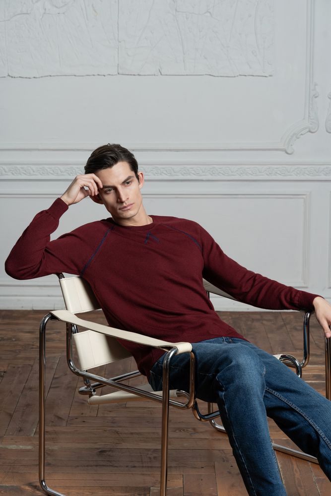 Вязаный свитшот или спортивный пуловер? Джемпер Stitch сочетает в себе и то, и другое и будет уместен как в офисе, так и в неформальной обстановке. Джемпер чулочной вязки с круглым воротом и контрастной строчкой. Ворот, низ изделия и низ рукавов выполнены резинкой.