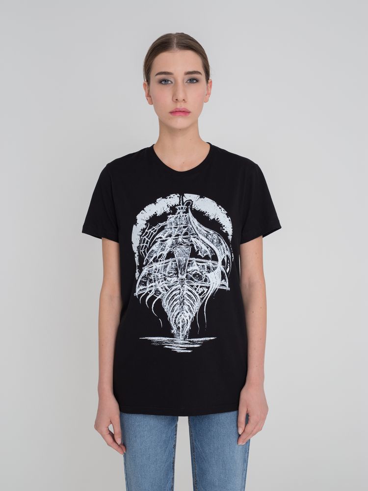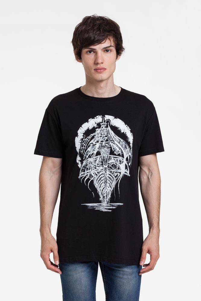 Для моряков появление загадочного «Летучего Голландца» считалось плохим предзнаменованием. Другое дело — одноименный принт, по исполнению напоминающий настоящую старинную гравюру. Только для несуеверных и сильных духом.Бесшовная футболка с круглым вырезом. Вырез отделан резинкой 1х1. Полотно прошло предварительную усадку.