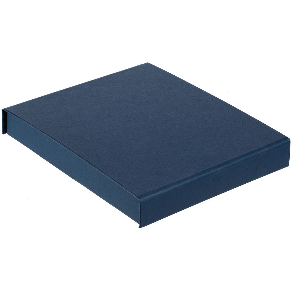 Коробка выполнена из переплетного картона, кашированного гладкой дизайнерской бумагой Malmero «Темно-синий», с крышкой на магните.