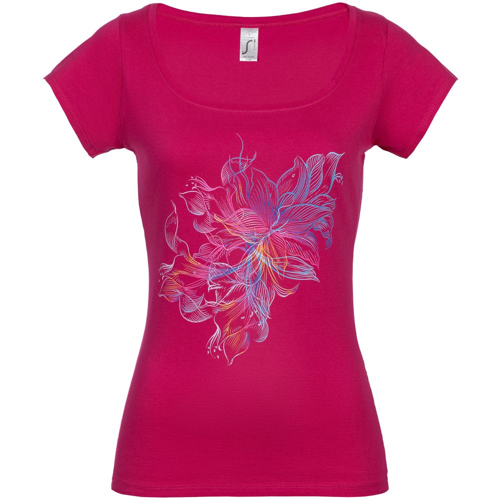 Коллекция Vibrance: для тех, кто чувствует бит окружающего мира и живет в своем неповторимом ритме счастья и успеха. Футболка женственного приталенного силуэта с американской проймой и глубоким вырезом, отделанным обтачкой из джерси. Двойная прострочка на вороте спереди, на рукавах и по низу.