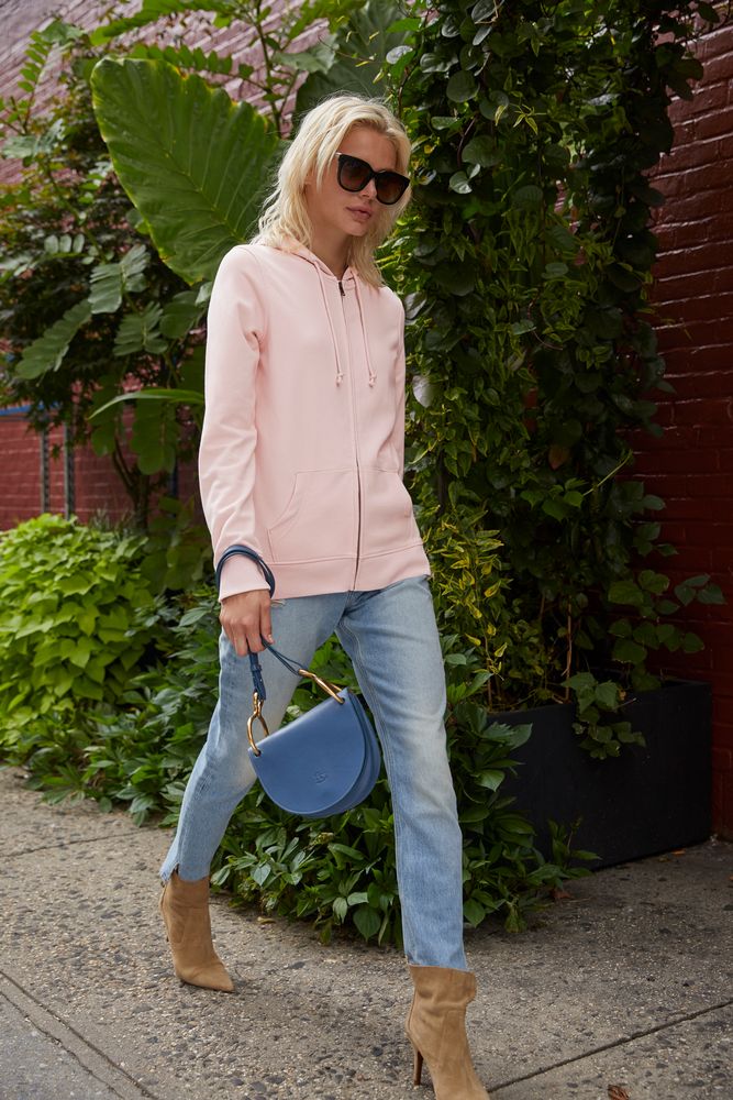 Толстовки линейки Organic изготовлены из органического хлопка и переработанного полиэстера (для изготовления каждой толстовки переработано 5 пластиковых бутылок объемом 1,5 л). Женская толстовка на молнии с капюшоном.
