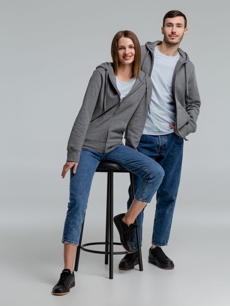 Толстовка на молнии с капюшоном унисекс King, темно-серый меланж