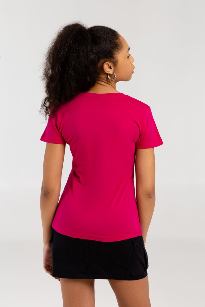 Классическая футболка приталенного кроя с круглым вырезом. Вырез отделан резинкой 1x1. Укрепляющая тесьма по вороту.