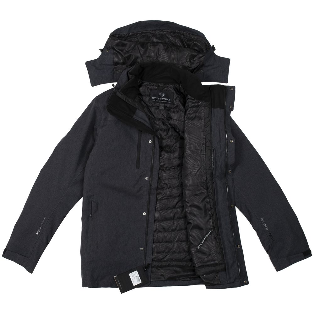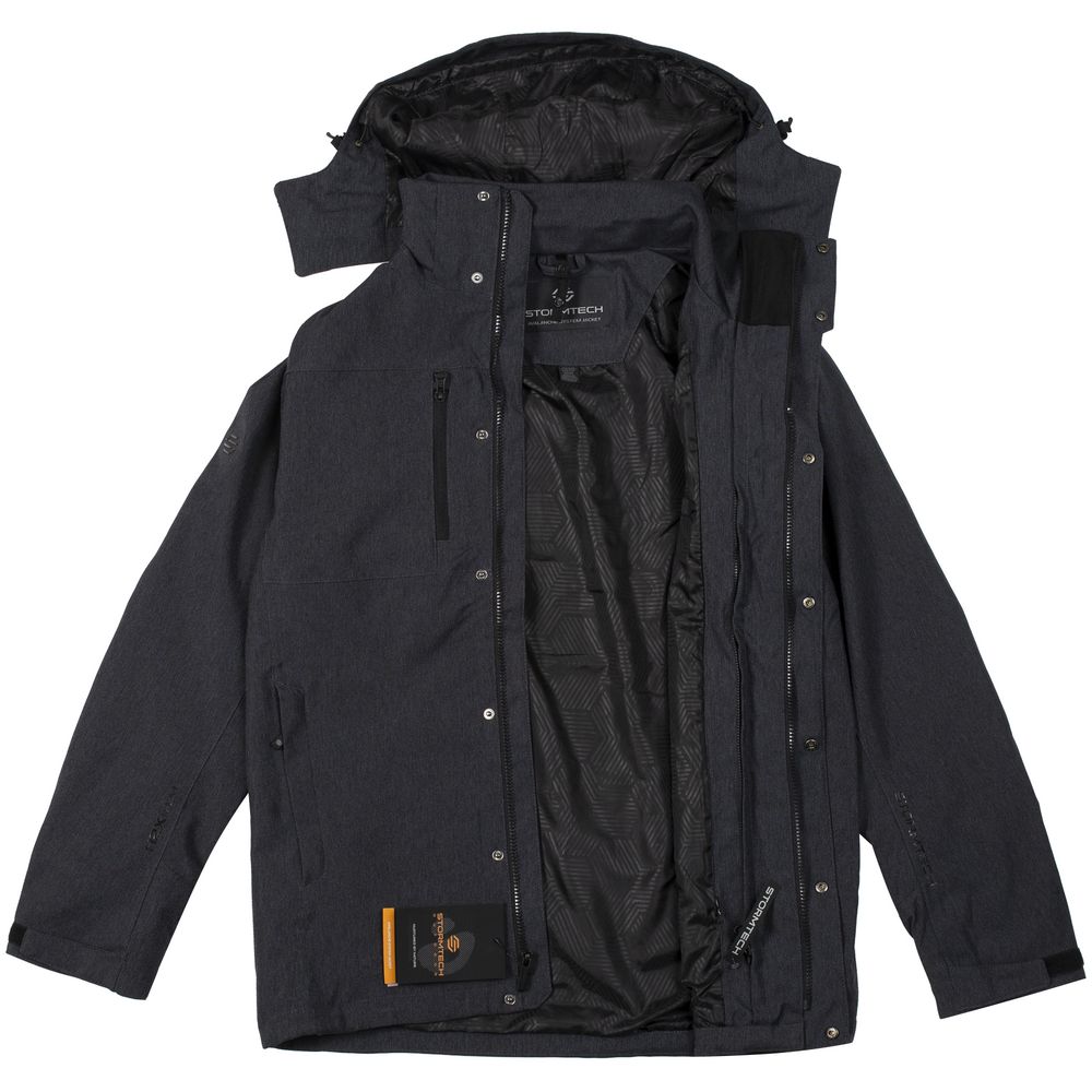Ветровка из мембранной ткани H2Xtreme снаружи — дышит, но не пропускает влагу. Анатомический крой локтя обеспечивает максимальную свободу движений, а полностью проклеенные швы создают водозащитную капсулу. Внутренний слой — куртка из таффеты с утеплителем — обладает надежной теплозащитой и удобно крепится к ветровке с помощью молний.