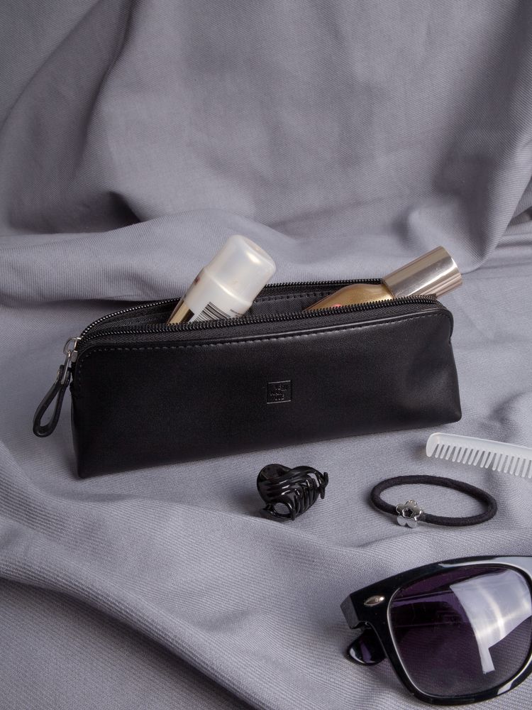 Изделие из рециклированной кожи, можно использовать как пенал для ручек или косметичку.