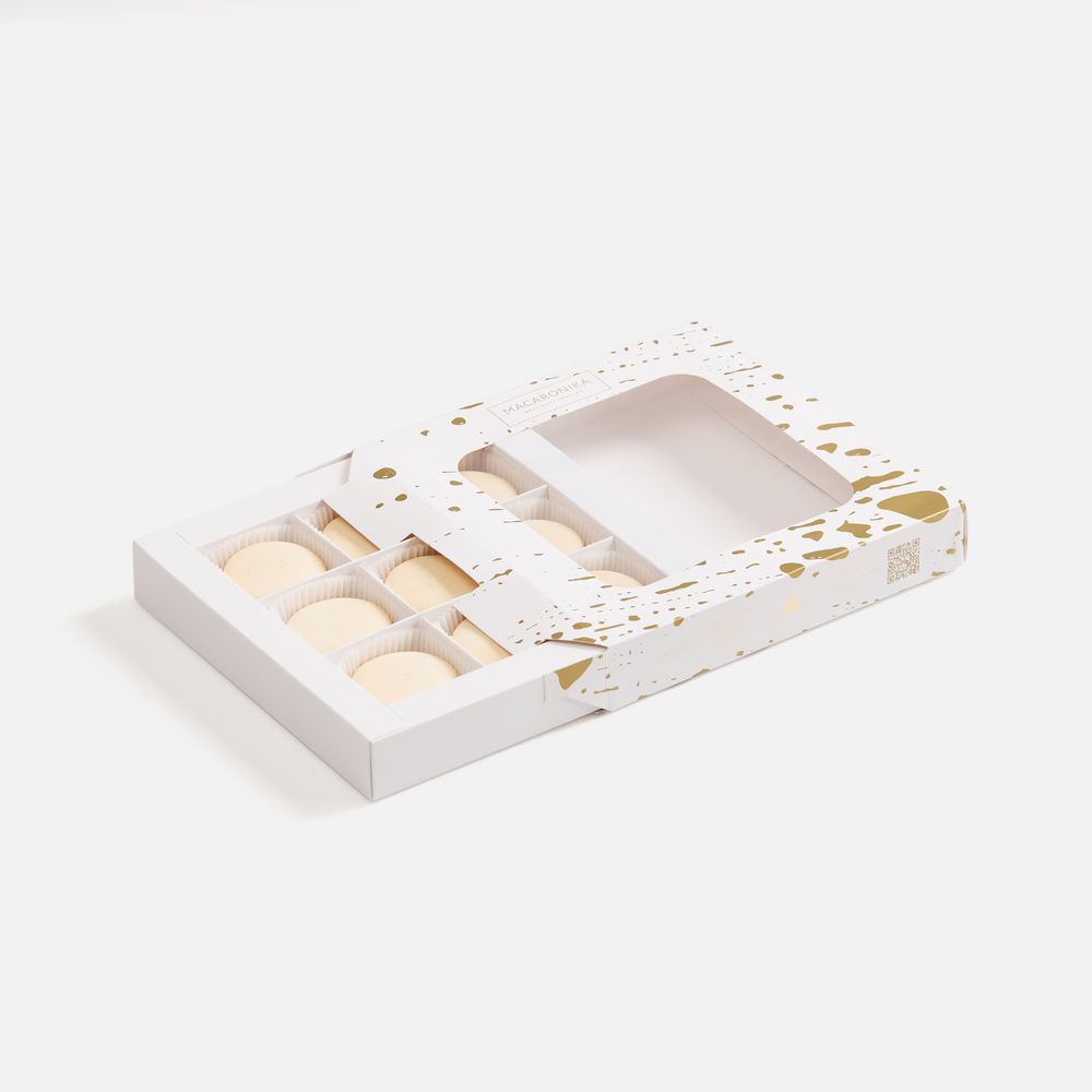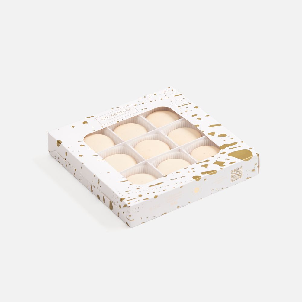 Стоимость доставки по Санкт-Петербургу и Москве включена в цену. Доставка в другие регионы рассчитывается и оплачивается отдельно.В набор входят 9 пирожных макарон. Мы предлагаем бесплатно добавить на них индивидуальные пожелания или логотип. Для печати будет использована недекорированная (белая) миндальная меренга, вкус самого макарона от этого не изменится.