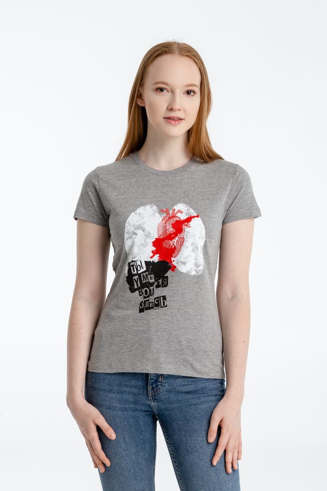 70889.11 - Футболка женская «Ты у меня вот здесь», серый меланж