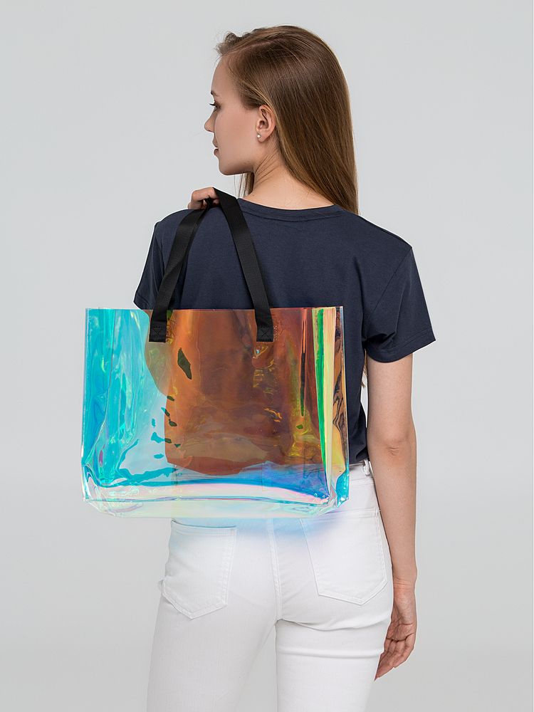 Полупрозрачная сумка с перламутрово-металлическим напылением, которое создает нежные переливчатые блики. С такой сумкой любой день будет казаться солнечным.