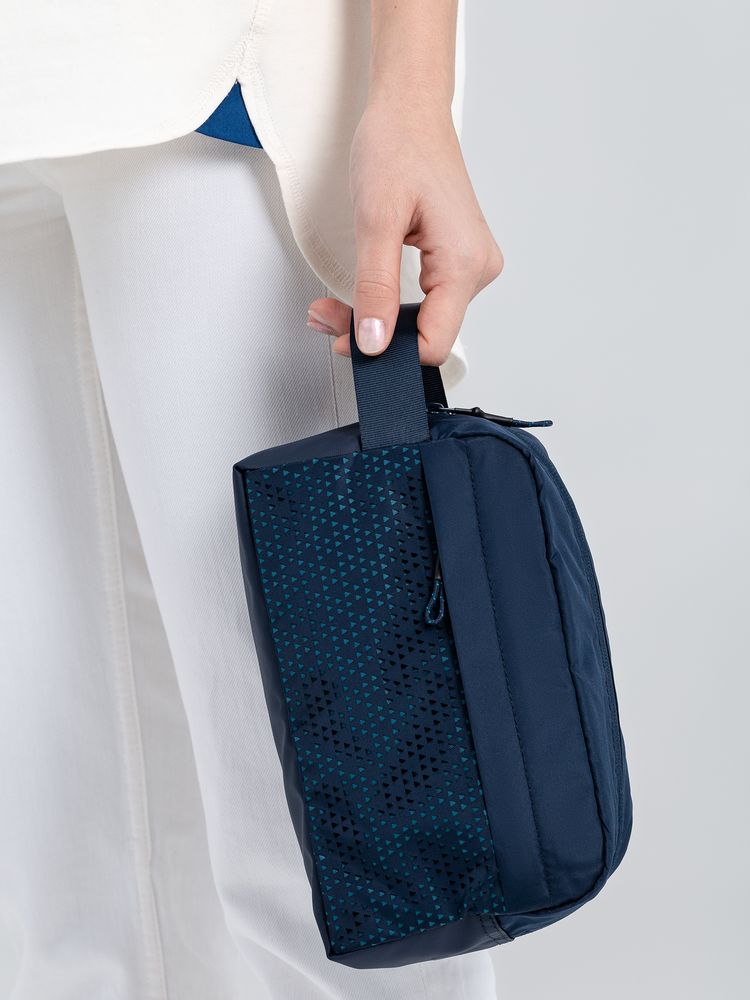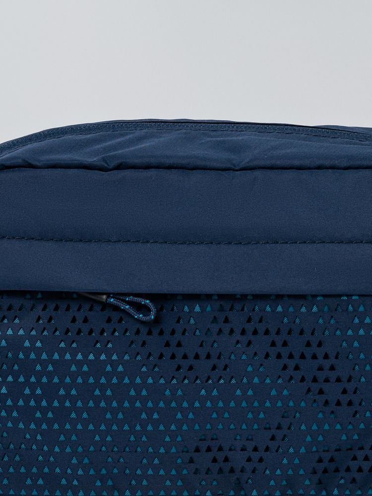 Цвет Outer Space лег в основу коллекции сумок Triangel, позволяя создать модное монохромное сочетание с изделиями Manevr темно-синего цвета. Изделия изготовлены из шелковистого полиэстера, в отделке использована лазерная перфорация паттерна.