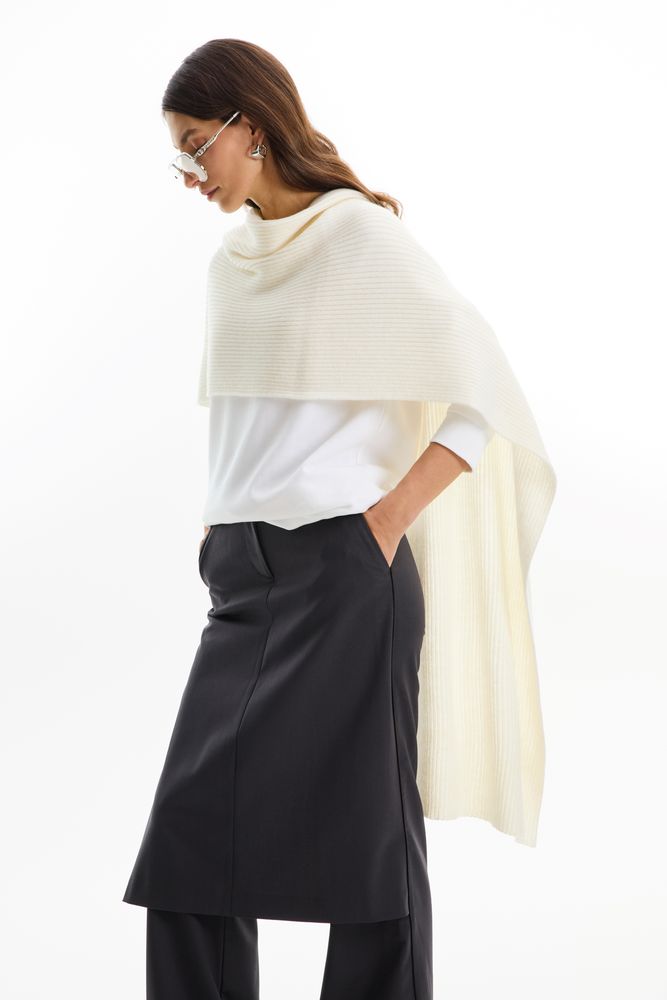 Шарф в рубчик Alpine из воздушной пряжи с высоким содержанием шерсти альпака и мериноса позволит создать актуальный сдержанный образ в стиле smart casual.