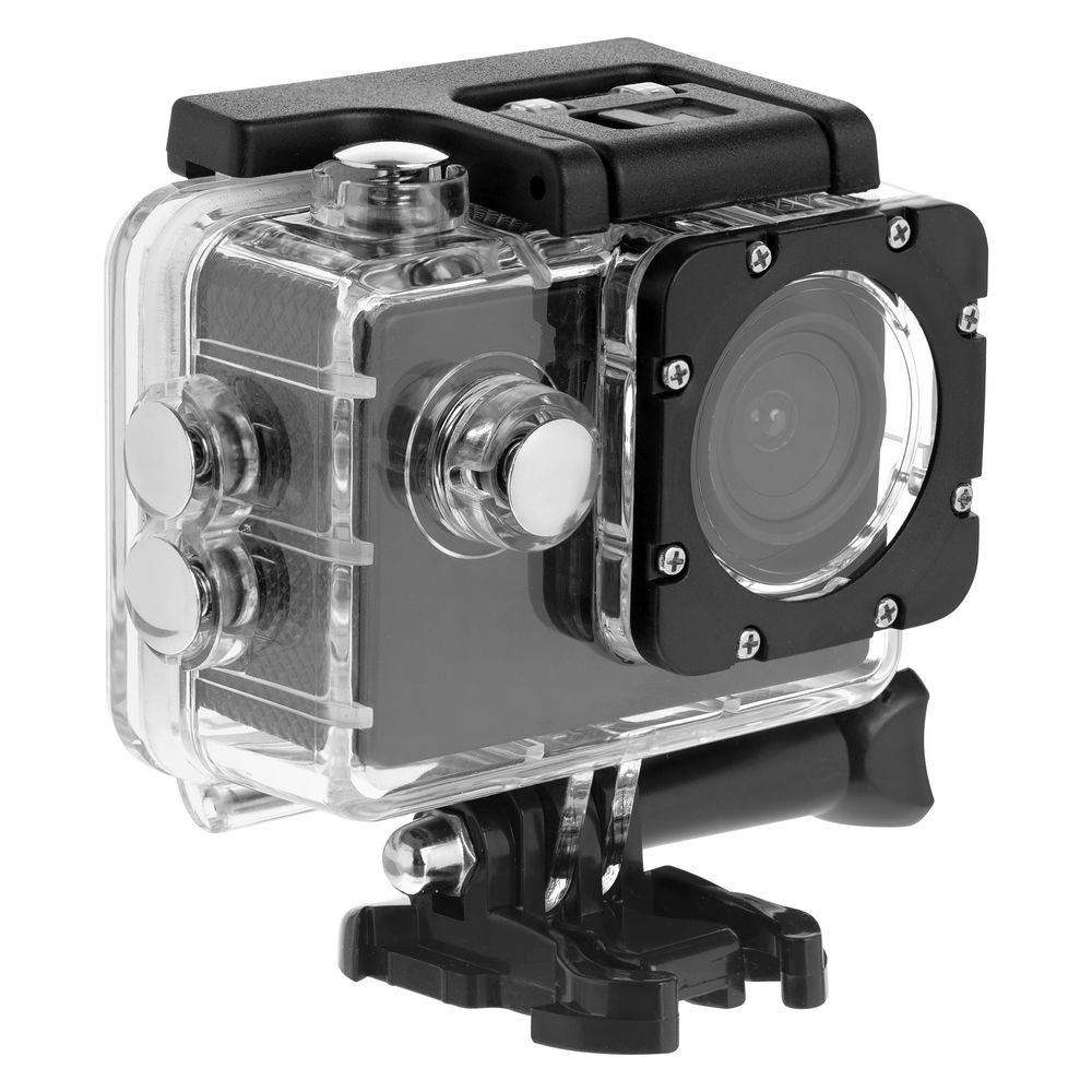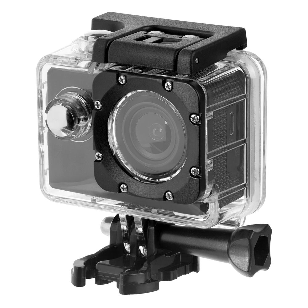 Комплект аксессуаров: водонепроницаемый бокс для подводной съемки (до 30 метров), крепление на руль велосипеда, крепление на шлем, рамка, крепления с винтами, ремни (2 шт.), липучка (2 шт.).