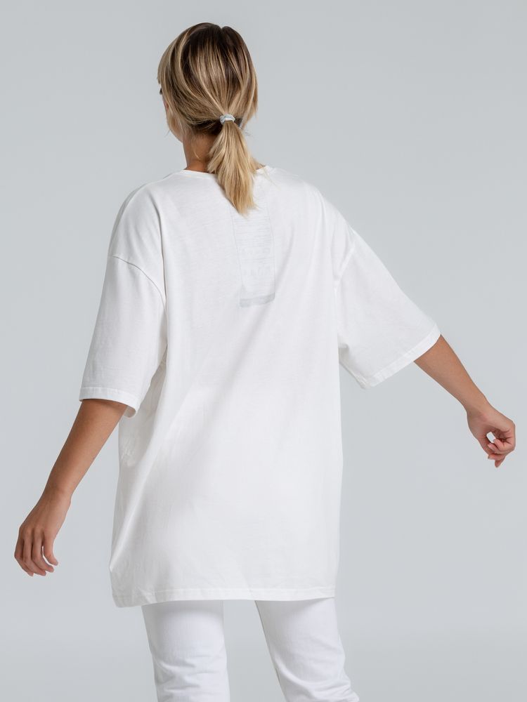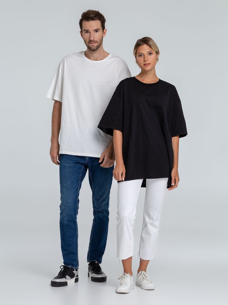 Футболка свободной посадки оверсайз для тех, кто следит за современными трендами, любит комфорт и свободный крой. Футболка унисекс со спущенным плечом и круглым вырезом, отделанным резинкой. Высокое качество материалов: полотно джерси (кулирная гладь), особо гладкая гребенная пряжа.