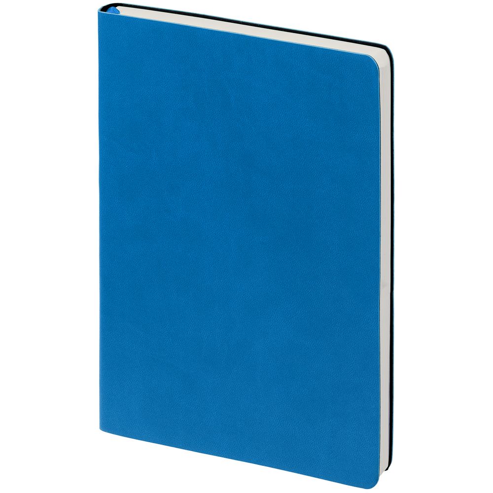 Ежедневник с гибкой обложкой, выполнен из материала Latte, ярко-синий, дополнен ляссе в цвет обложки.