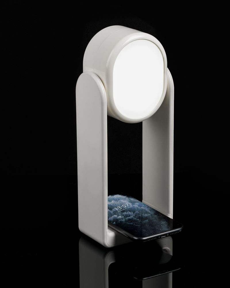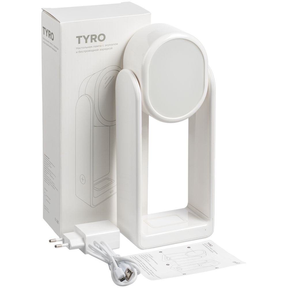 Настольная лампа с зеркалом и беспроводной зарядкой Tyro — это многофункциональное устройство: это и станция для беспроводной зарядки, и настольная лампа, и компактное зеркало.