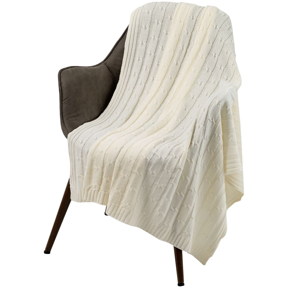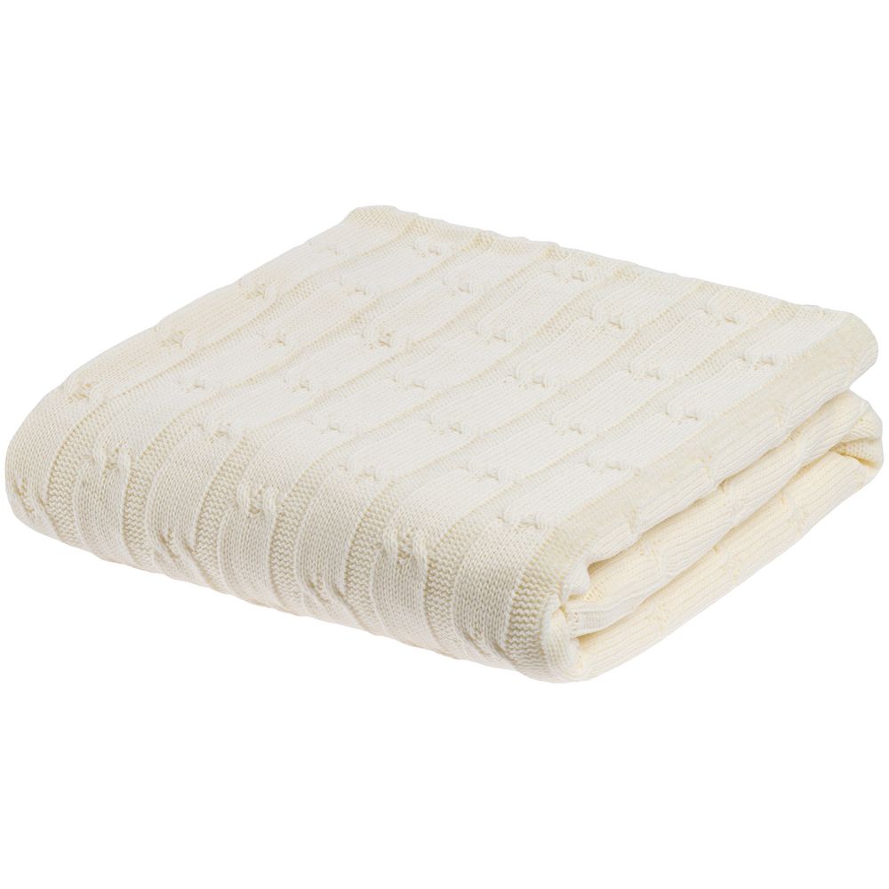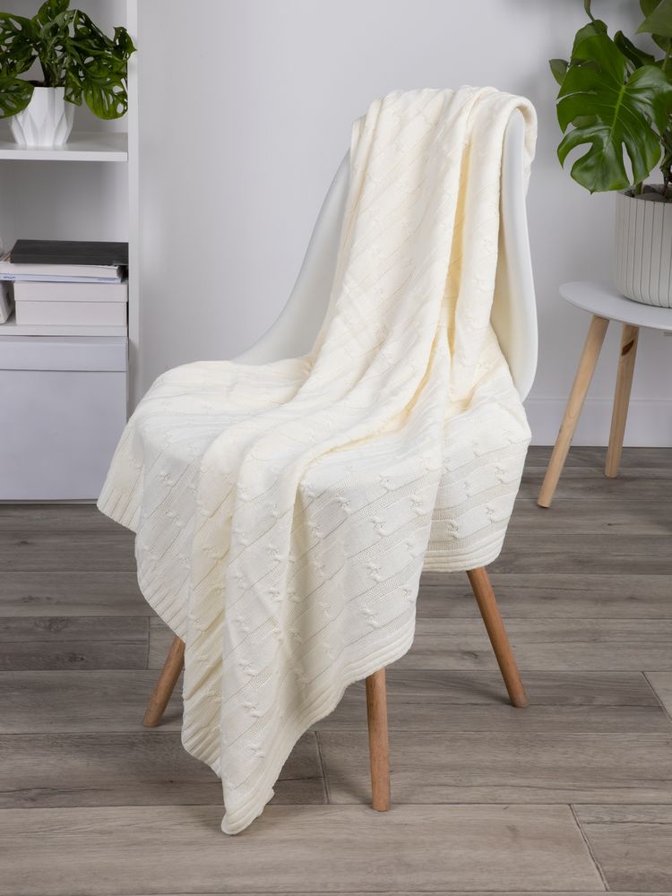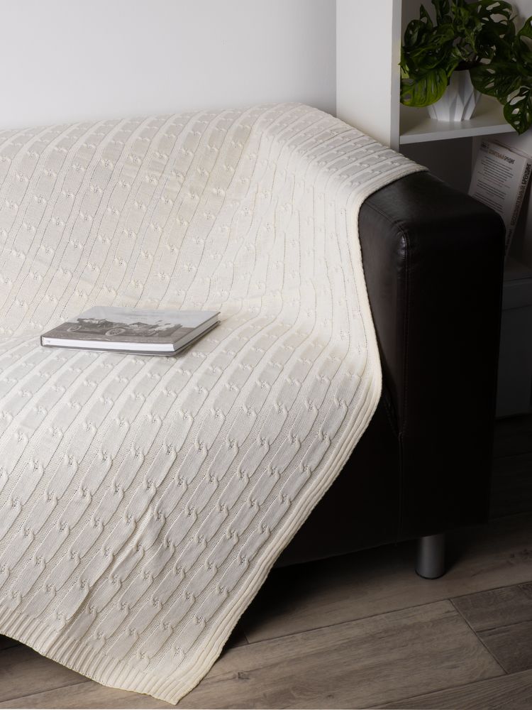 Плед мягкого натурального оттенка с ненавязчивым классическим узором «косы» добавит спокойного шика в интерьер, гармонично впишется в композицию современной гостиной или спальни.