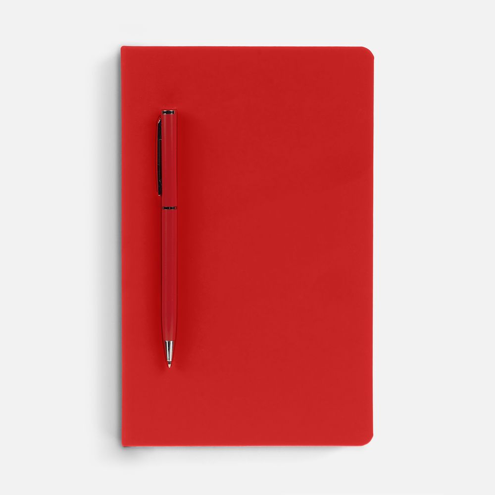 Ежедневник в твердой обложке, выполненной из материала Soft Touch Ultra, красный РР, дополнен цветным ляссе и магнитом, удерживающим ручку.