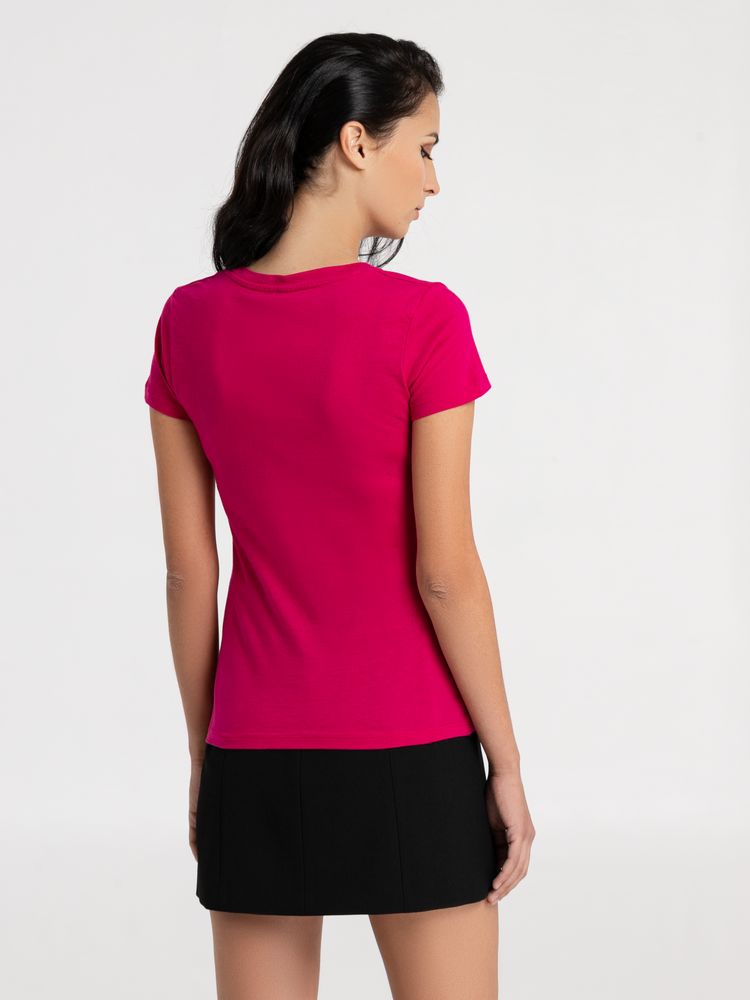 Классическая футболка приталенного кроя с круглым вырезом. Вырез отделан резинкой 1x1. Укрепляющая тесьма по вороту.