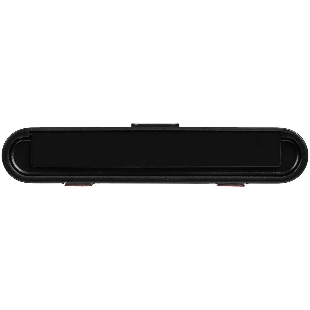 В наборе подставка с клейким основанием и комплект магнитных символов — при изменении номера телефона данные на визитке легко скорректировать. Вытолкните блок с номером вперед, чтобы он стал виден окружающим, чтобы скрыть — нажмите на кнопку наверху корпуса. Надежно крепится на двусторонний скотч 3M.