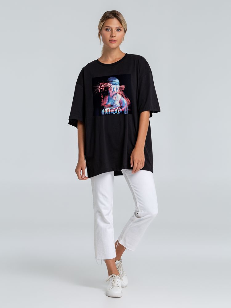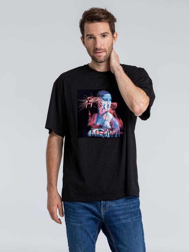 Плох тот горностай, что не мечтает стать тигром! Оверсайз футболка о том, что мечтать надо по-крупному!Футболка унисекс со спущенным плечом и круглым вырезом, отделанным резинкой. Высокое качество материалов: полотно джерси (кулирная гладь), особо гладкая гребенная пряжа. Принт с информацией о бренде и инструкцией по уходу за изделием на изнаночной стороне футболки.