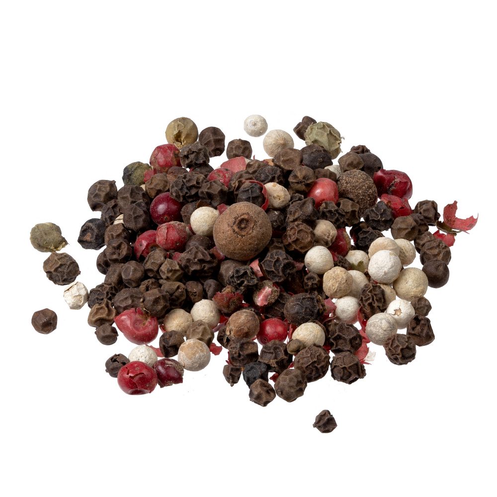 Универсальная приправа, подходящая для супов, салатов, напитков, мясных и бобовых блюд, а также десертов — это смесь пять перцев: белого, розового, душистого, зеленого и черного. Смотрится эффектно, а на вкус — необычно и очень ароматно. Состав: перец черный, перец зеленый, перец душистый, перец розовый, перец белый. Вес 23 г. Срок хранения 12 месяцев.
