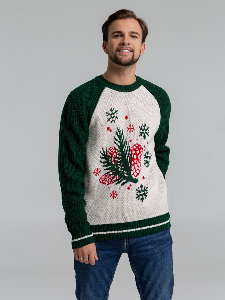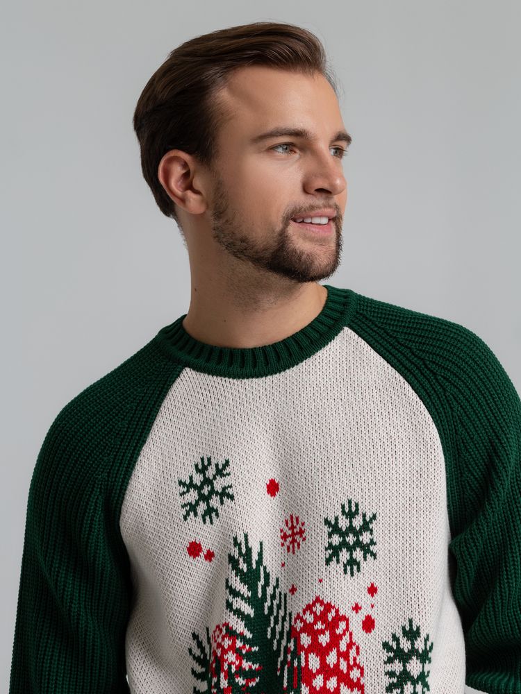 В джемпере Sosnovka хоть на горнолыжную базу с коллегами, хоть на вечеринку с друзьями. Эстетика ретро, рисунок, будто с открытки из детства, и классические рождественские цвета — прекрасный рецепт для уютных праздничных дней.Джемпер с круглым воротом и жаккардовым рисунком. Ворот, манжеты и низ изделия выполнены резинкой.