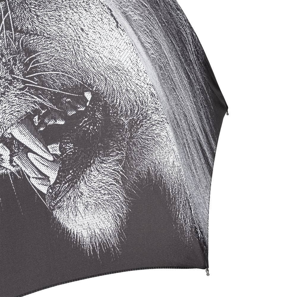 Царь всех зверей эффектно представлен в виде контрастного рисунка с проработкой самых мелких деталей. В такой компании новые подвиги не заставят себя ждать, ведь лев — символ силы, бесстрашия и мудрости.Зонт-полуавтомат. Поставляется в полиэтиленовом пакете.