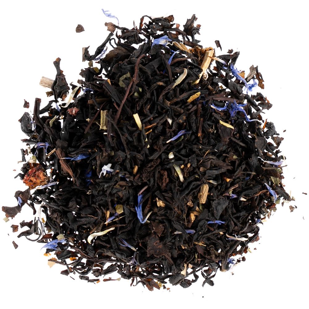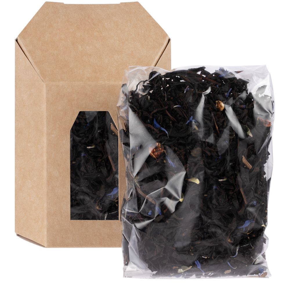 Праздничный купаж на основе черного чая, украшенный цветочными лепестками и кусочками клубники.Состав: черный индийский чай, сушеная клубника, клубничный лист, цветки василька, ароматизатор «клубника». Вес 50 г. Срок годности: 24 месяца.