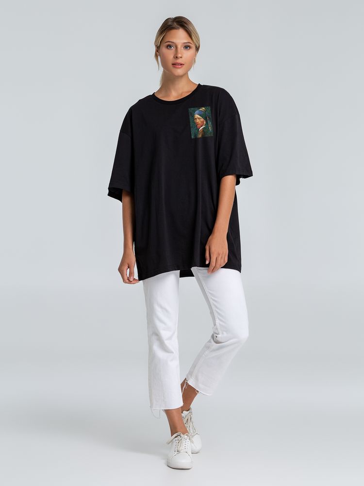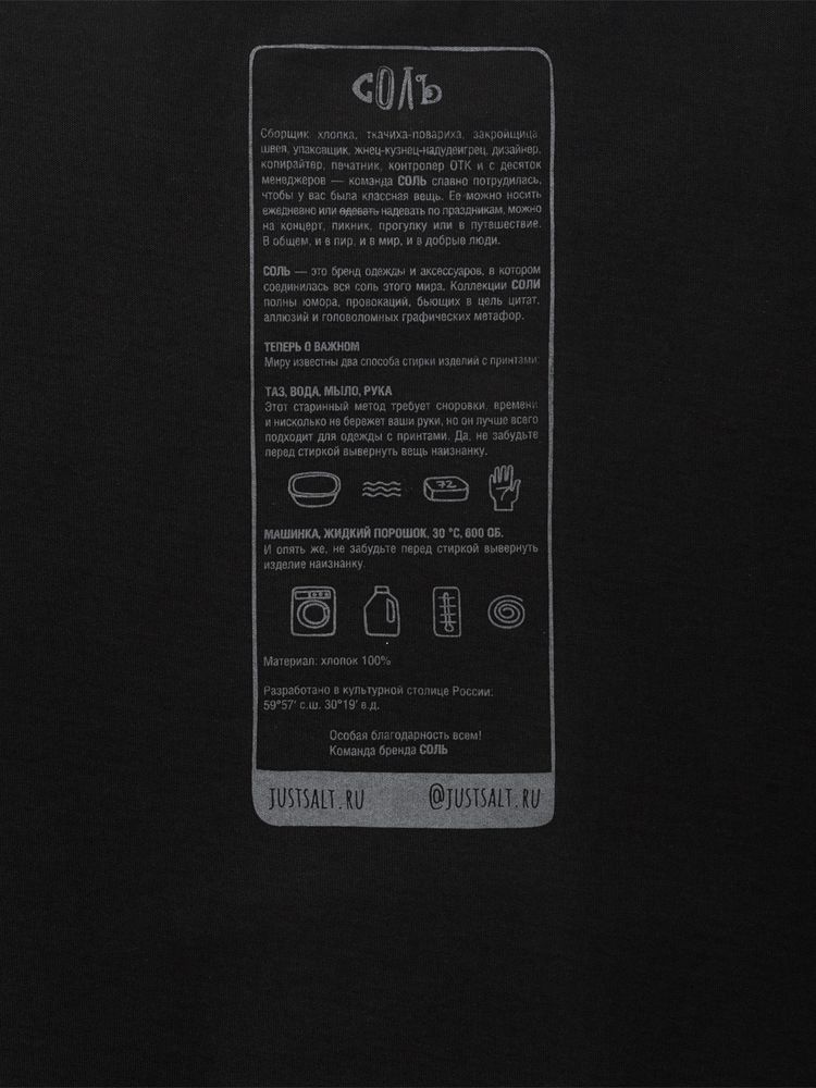 Футболка унисекс со спущенным плечом и круглым вырезом, отделанным резинкой. Высокое качество материалов: полотно джерси (кулирная гладь), особо гладкая гребенная пряжа. Принт с информацией о бренде и инструкцией по уходу за изделием на изнаночной стороне футболки.