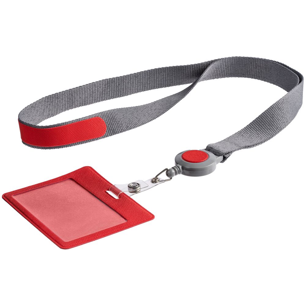 Чехол для карточки с лентой и ретрактором Devon, красный
