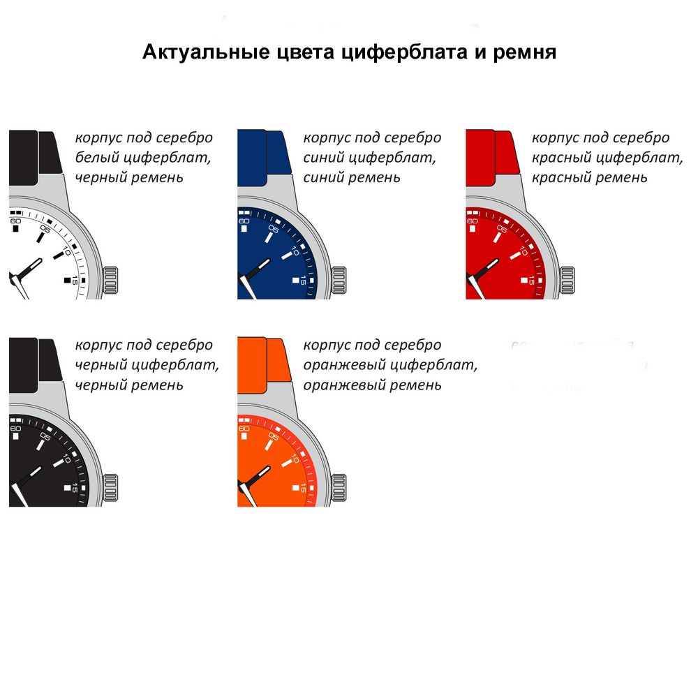 Цена включает тампопечать на циферблате (до 3 цветов) либо гравировку на задней крышке. Поставляются в картонном пенале (цвета в наличии нужно уточнять при запуске заказа).