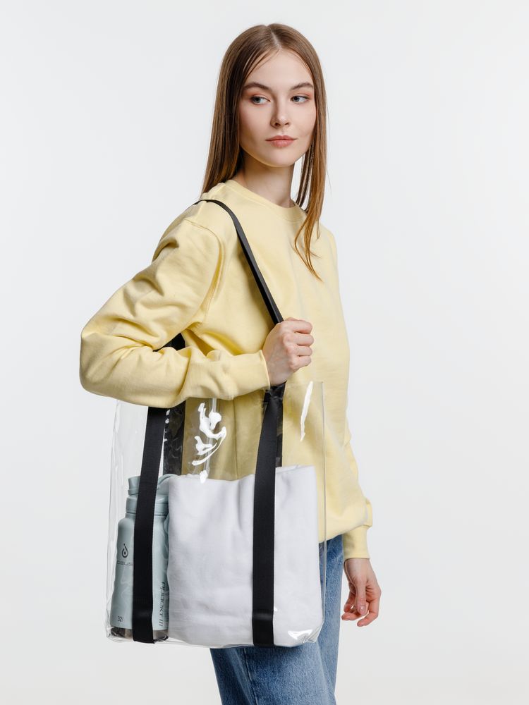 Прозрачные сумки никогда не выйдут из моды, ведь это прекрасная возможность показать всем свой богатый внутренний мир или хотя бы живописный натюрморт после похода на рынок. Шопер из ПВХ не промокает, легко чистится и выглядит стильно в любое время года при любой погоде.Емкость 11 литров. Выдерживает нагрузку до 5 кг.